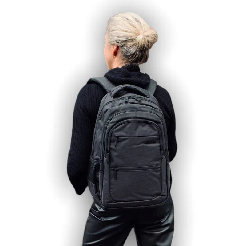 De Next laptop-rugzak is een ruime en duurzame rugzak gemaakt van stevig 600 denier polyester, ideaal voor dagelijks woon-werkverkeer. De tas heeft voldoende capaciteit voor dagelijkse benodigdheden en heeft een gewatteerd ritsvak voor een laptop tot 15,6″. Het hoofdcompartiment is geschikt voor A4 documenten, accessoires ed. Aan de zijkanten zitten insteekvakken waar een blikje of waterflesje in passen. Aan de voorzijde bevinden zich nog drie ritsvakken terwijl er aan de achterzijde ook een ritsvak zit. De tas is prettig te dragen dankzij de gewatteerde schouderbanden en het gewatteerde rugpaneel. Tevens heeft de tas een Smart Sleeve die ervoor dien om te tas te bevestigen op het treksysteem van een trolley.