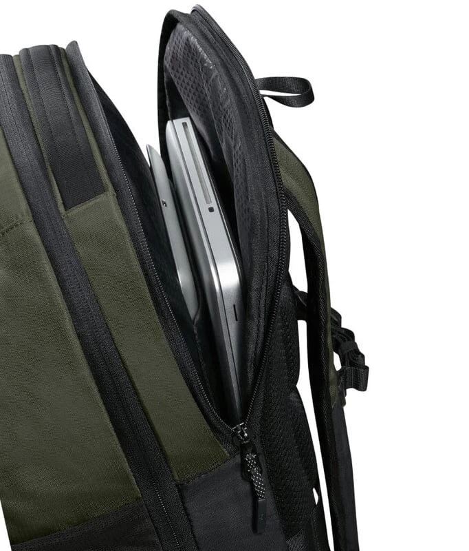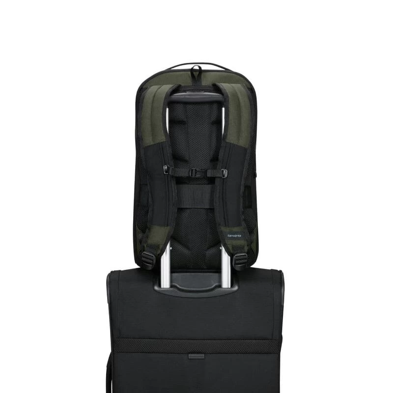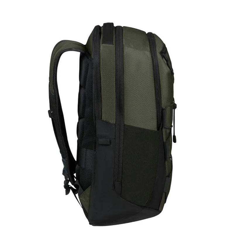 Deze laptop rugzak is een ruime en duurzame rugzak die door het elastiek aan de voorzijde en drinkfles houders aan de zijkanten, een sportief uiterlijk heeft. De tas heeft voldoende capaciteit voor dagelijkse benodigdheden en biedt ruimte aan een 15,6″ laptop en 10,5″ tablet of Ipad. Het hoofdcompartiment is geschikt voor A4 documenten, accessoires en bevat een breed ritsvak en kleinere insteekvakken. De tas is prettig te dragen dankzij de gewatteerde schouderbanden, de in hoogte verstelbare borstriem en het gepolsterde rugpaneel. Middels de smart sleeve is de rugtas gemakkelijk op het treksysteem van een trolley te bevestigen. De rugzak is gemaakt van waterafstotend polyester en heeft waterafstotende ritsen.Â