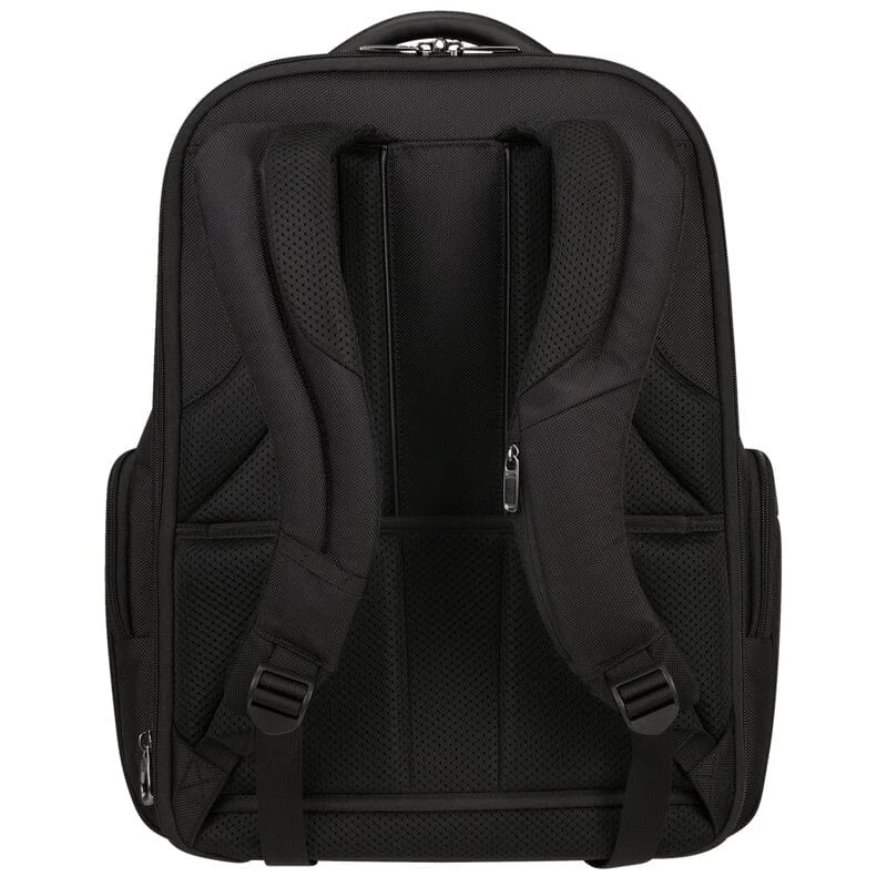 De backpack 17,3″ Expandable heeft een ruim formaat met alle gemakken voorzien, geschikt voor A4 materiaal, voorzien van gewatteerd 17,3″ laptop (41,4×26.6 cm) cm) en tablet vak (26.6×18.3 cm). Middels rits te vergroten met 8,5 liter. Met georganiseerde voorvakken en USB aansluiting berg je al je ‘zakelijke’ spullen overzichtelijk op maar heb je ze tegelijk altijd bij de hand. Zeer praktisch in gebruik met verstelbare, gewatteerde rugzakriemen, smart sleeve achterop waarmee je de rugtas aan een trolley kunt bevestigen. en twee drinkfleshouders aan de zijkant.