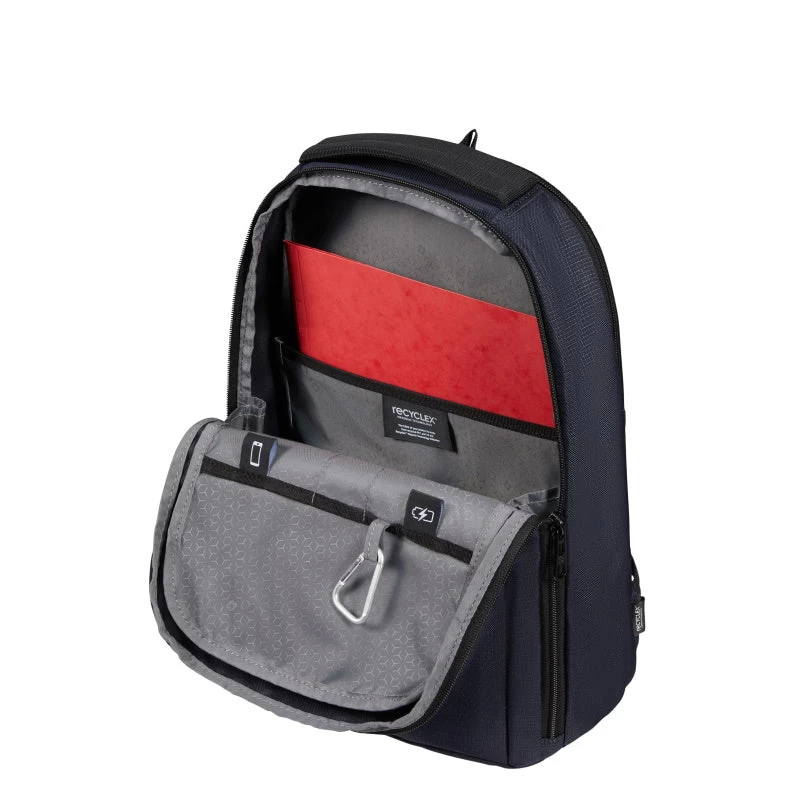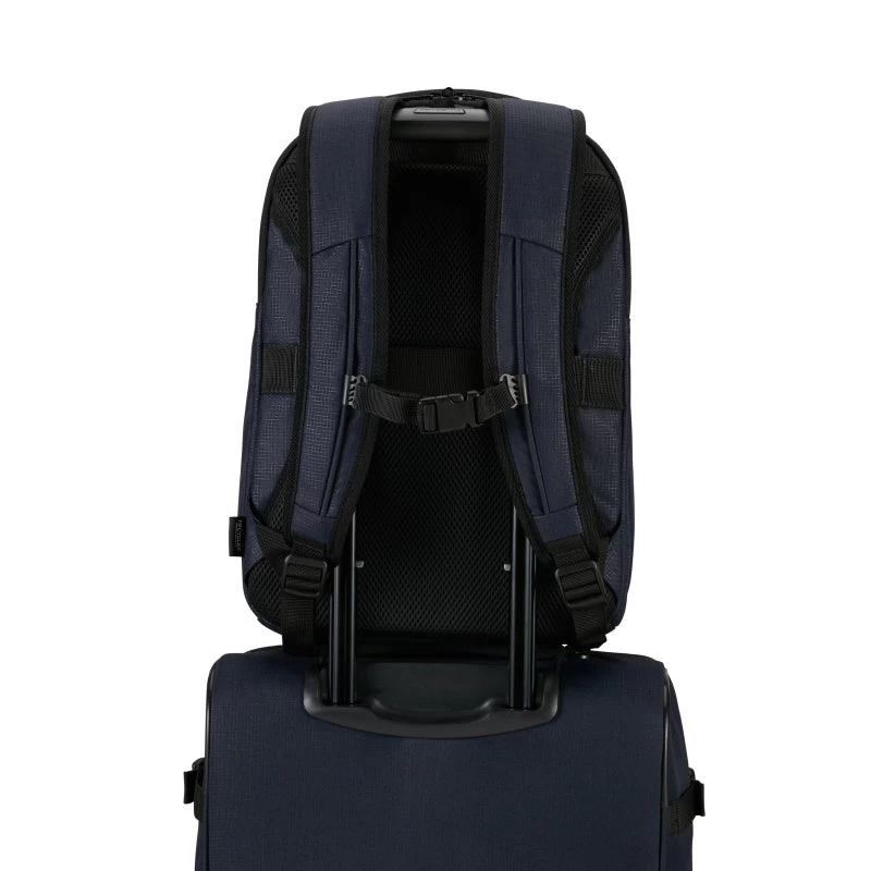 Deze laptop rugzak is een ruime en duurzame rugzak, ideaal voor dagelijks woon-werkverkeer. De tas heeft voldoende capaciteit voor dagelijkse benodigdheden en biedt ruimte aan een 14,1″ laptop. Het hoofdcompartiment is geschikt voor A4 documenten, accessoires en bevat een breed insteekvak en kleinere insteekvakken. De voorzijde heeft een ritsvak. De tas is prettig te dragen dankzij de gewatteerde schouderbanden, de in hoogte verstelbare borstriem en het gewatteerde rugpaneel. Middels de smart sleeve is de rugtas gemakkelijk op het treksysteem van een trolley te bevestigen.